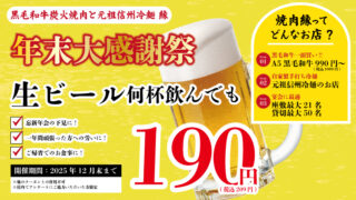 | 店名 | 黒毛和牛炭火焼肉と元祖信州冷麺 焼肉縁(えん) |